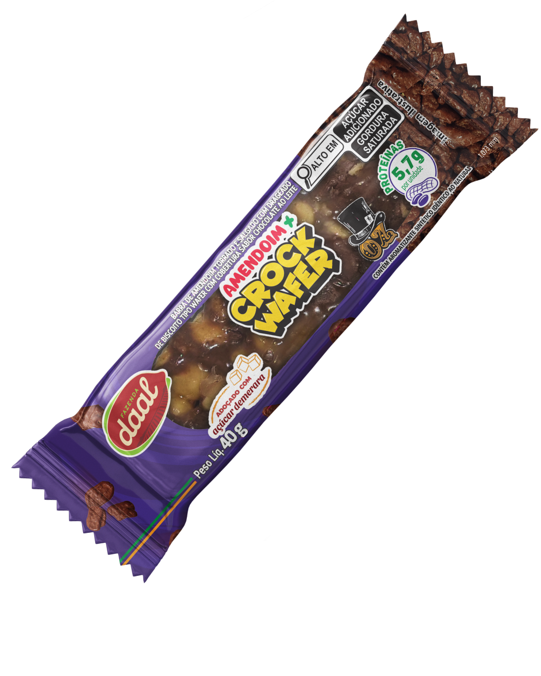 A Barra Amendoim Torrado Salgado Crock Wafer Daal combina o sabor intenso do amendoim Daal, com DNA exclusivo, à crocância do wafer, entregando uma experiência cheia de textura e sabor. Com fonte de fibras, proteínas e energia para o dia a dia, é um snack prático para diferentes momentos da rotina, como no meio da manhã, à tarde, antes ou depois das atividades. Ideal para quem busca saciedade, conveniência e um toque extra de crocância sem abrir mão do sabor marcante do amendoim Daal.