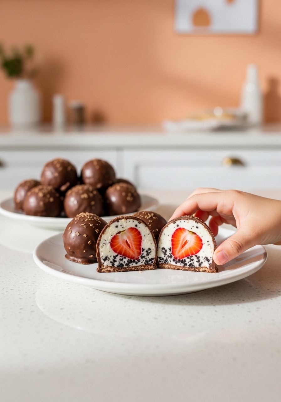 Bombom de morango com Pasta de Amendoim Cookies & Cream